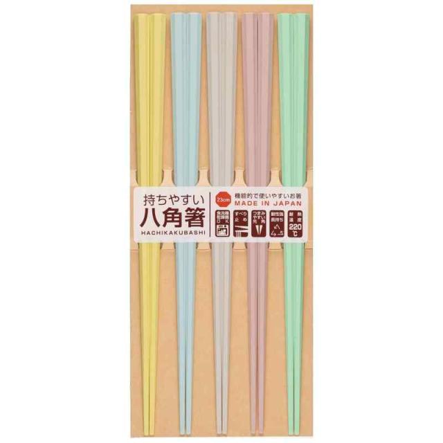 箸 食洗機対応 23cm 5膳 セット 業務用 樹脂製 来客用 先角 八角 パステル カラフル おしゃれ 可愛い 日本製 264895