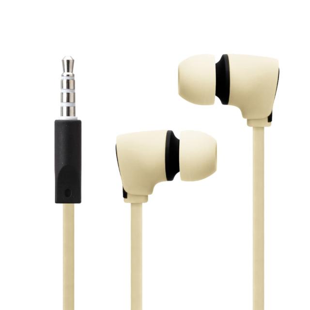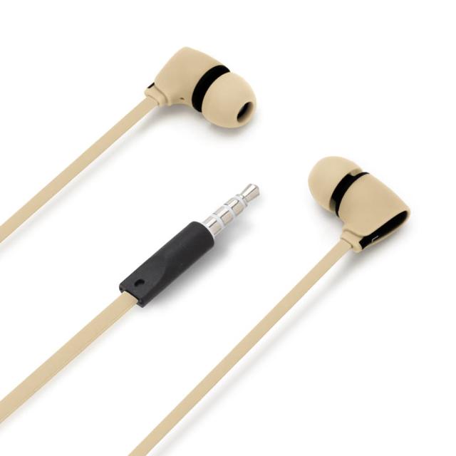イヤホン ステレオイヤホン 有線イヤホン 3.5mm 有線 カナルタイプ フラットコード ハンズフリー マイク付き 通話 ストレートプラグ ベージュ