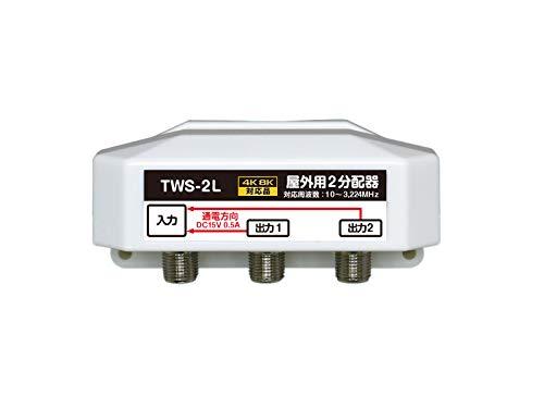 4K8K放送対応(10MHz - 3224MHz対応)の屋外用2分配器(全端子通電型)です。4K8K放送に対応する3.2GHz対応モデルです。最大DC15V・0.5A(極性あり 出力から入力方向)