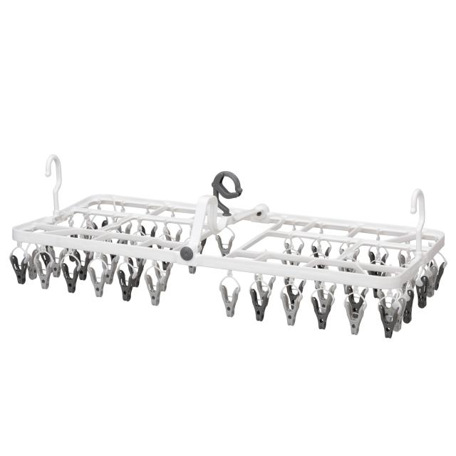 使用時サイズ:幅80×奥行37×高24.5cm 収納時サイズ:幅41.5×奥行4.5×高38.8cm 商品重量:905g 主材質:[本体]ポリプロピレン、[ピンチ]ポリプロピレン、[バネ]鋼線 ※対応竿サイズ:径35mmまで