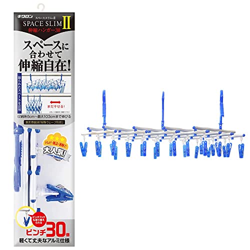 キクロン 洗濯 物干し ハンガー 伸縮ハンガー 30ピンチ ブルー ピンチ取り替え可能 角ハンガー スペーススリム?