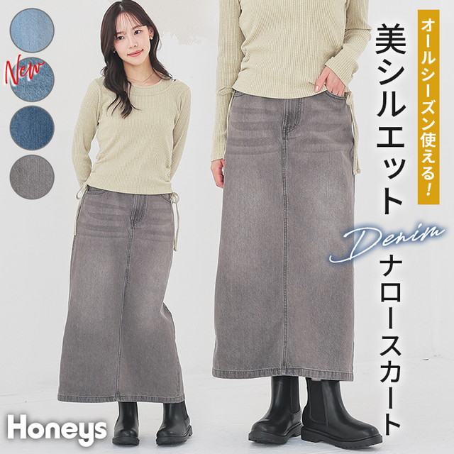ボトムス スカート ロングスカート ロング丈 タイトスカート デニムスカート 春 夏 レディース Honeys ハニーズ デニムナロースカート
