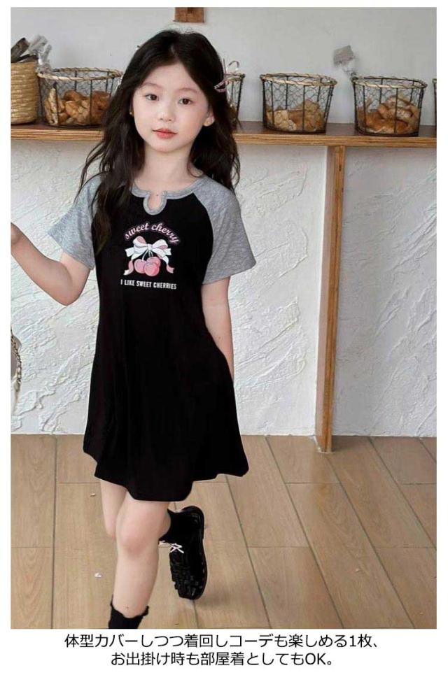 トップス 子供服 小学生 半袖 ガールズ Tシャツワンピース Tシャツワンピース 涼しい 女の子 中学生 ダンス ファッション 春 夏 大人っぽい 薄手 韓国子供服 ジュニア Tシャツ キッズ 膝丈 チュニックワンピース ルームウェア 100 110 120 130 140 150