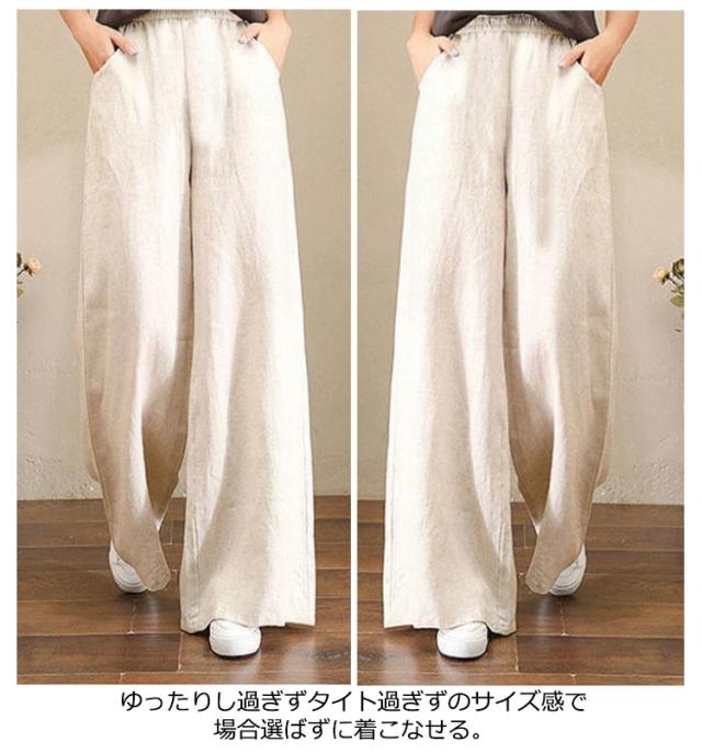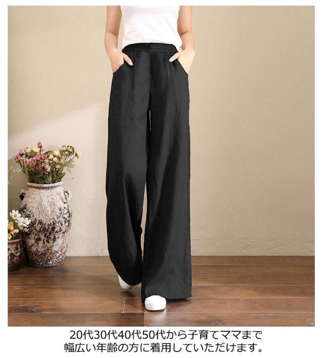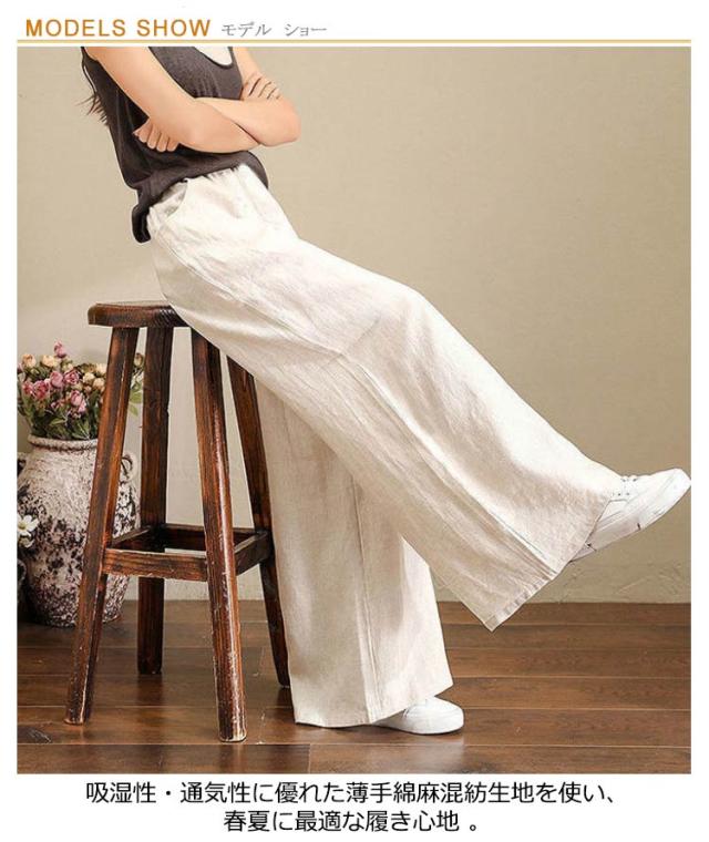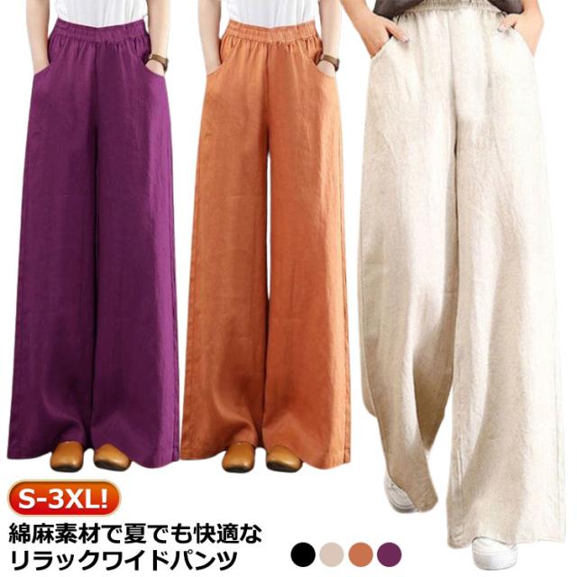 | S-3XL!綿麻素材で夏でも快適なリラックワイドパンツ。 吸湿性・通気性に優れた薄手綿麻混紡生地を使い、春夏に最適な履き心地 ゆったりし過ぎずタイト過ぎずのサイズ感で場合選ばずに着こなせる 20代30代40代50代から子育てママまで幅広い年齢の方に着用していただけます | |