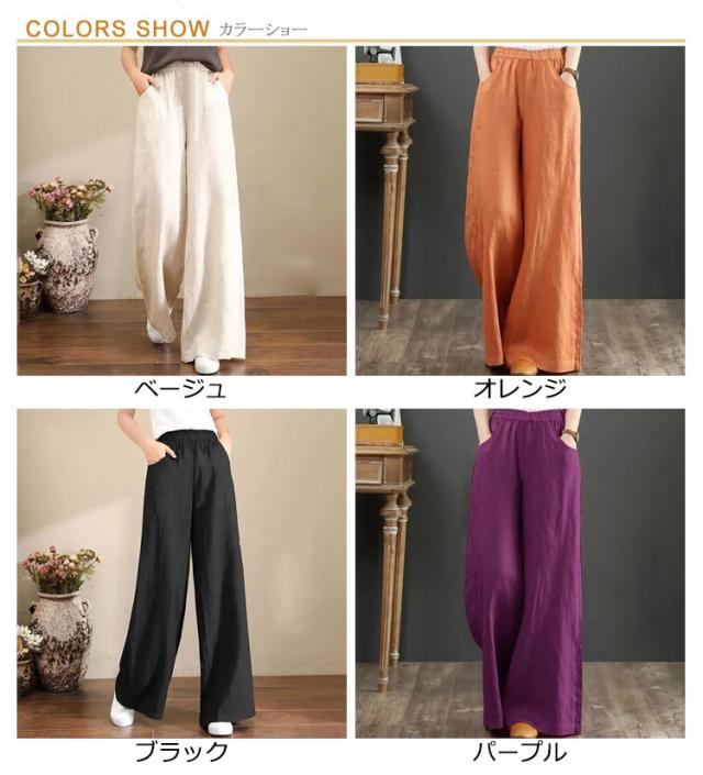 女性用 薄手 ワイドパンツ パンツ パンツ 夏 リネンパンツ レディース ウエストゴム ウエストゴム 綿麻 春 体型カバー ガウチョパンツ ゆったり ボトムス シンプル フレアパンツ きれいめ リラックス リネンパンツ 美脚 通勤 30代 夏物 爽やか