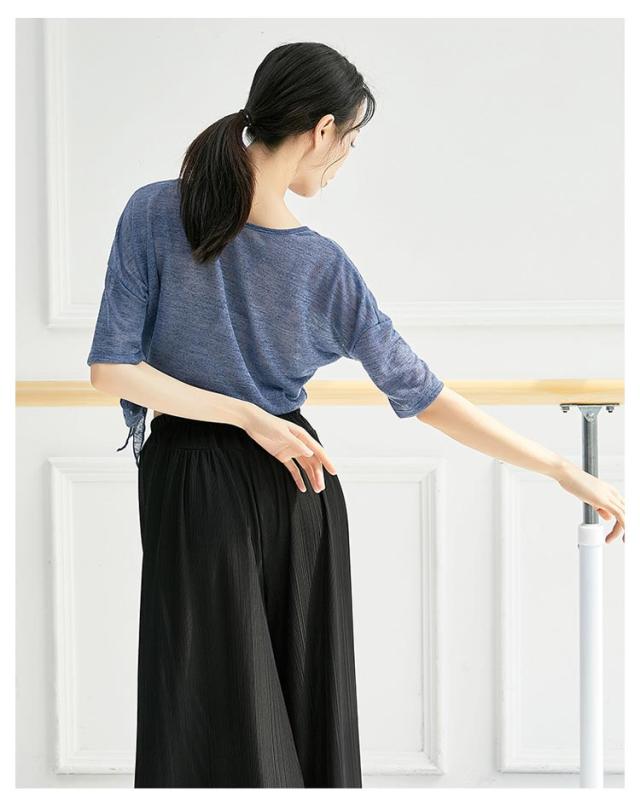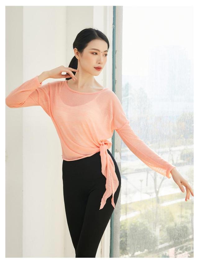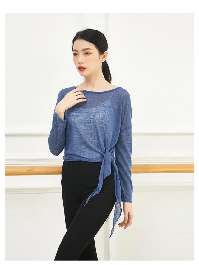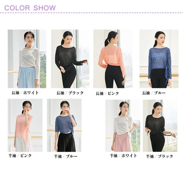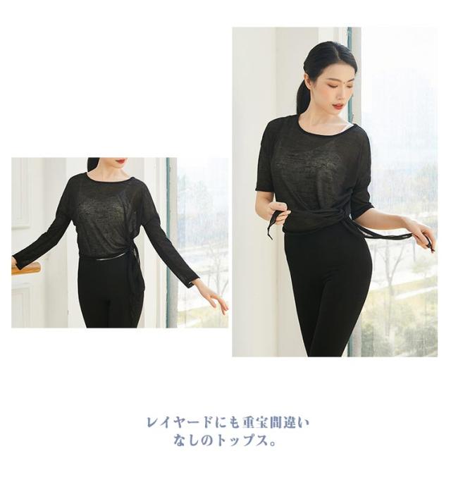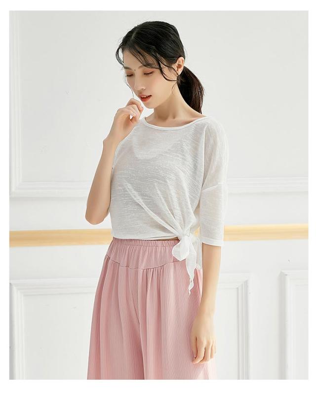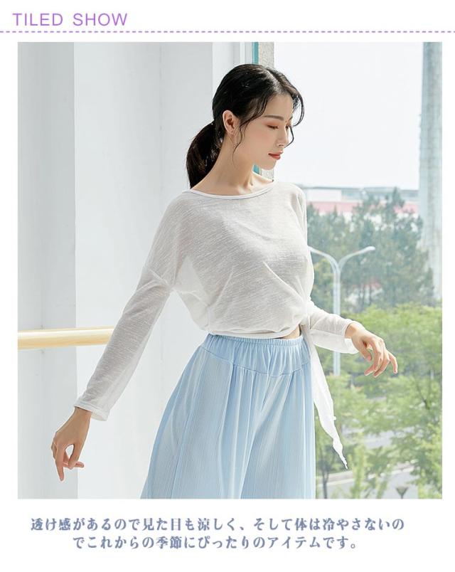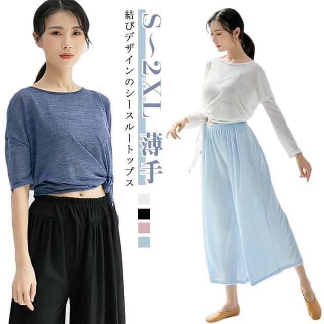 Tシャツ 薄手 可愛い 社交ダンス レディース 動きやすい トップス ヨガウエア バレエ上着 透け感 シースルー バレエ トップス カットソー 練習着 大人 バレエ上着 スポーツ ウェア ダンス衣装 レディース 演出用 体操服 きれいめ 結び 体型カバー 無地