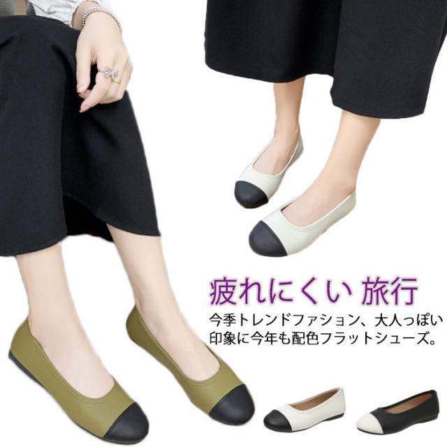 通勤 歩きやすい フラットシューズ パンプス レディース フラットパンプス 走れる 夏 痛くない おしゃれ 旅行 履きやすい 配色 疲れにくい ママ ぺたんこ