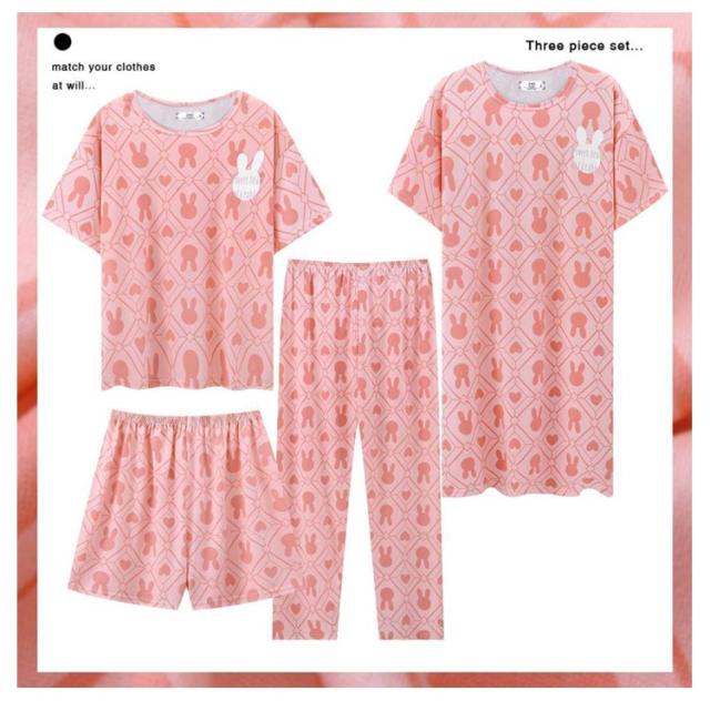 レディース パジャマ ワンイース 夏 5分袖 夏用ワンピース パジャマ パジャマ 夏用 4点セット 半袖長ズボン レディース 女性 ロングTシャツ 部屋着 室内着 寝巻き 半袖 長ズボン パジャマ上下 夏 上下セット セットアップ ウエストゴム