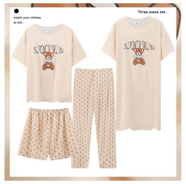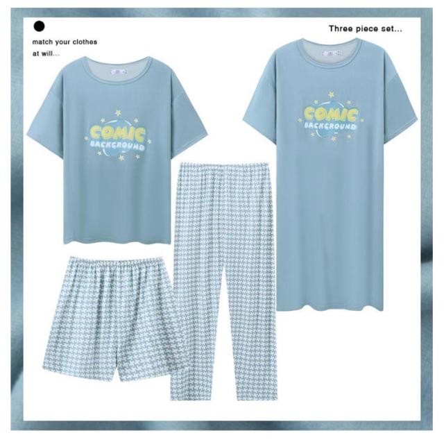 半袖長ズボン 5分袖 ルームウェア ワンイース パジャマ レディース 4点セット 夏用ワンピース 夏 夏用 寝巻き 部屋着 パジャマ レディース 女性 室内着 ロングTシャツ 半袖 長ズボン パジャマ上下 夏 上下セット セットアップ ウエストゴム