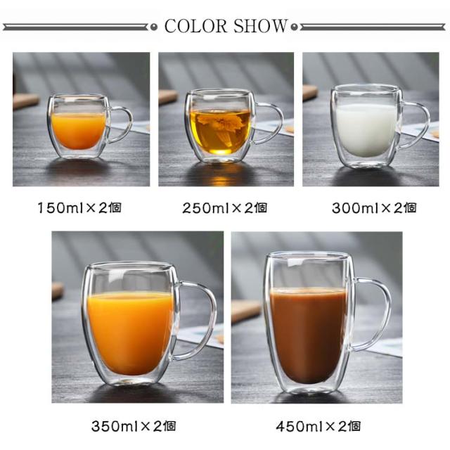 コップ 2個セット 350ml ダブルウォールグラス 450ml 150ml 300ml 保温 おしゃれ シンプル 耐熱 耐冷 保冷 250ml 2重グラス 食器 キッチン用品 コーヒーカップ タンブラー カプチーノ カフェラテ