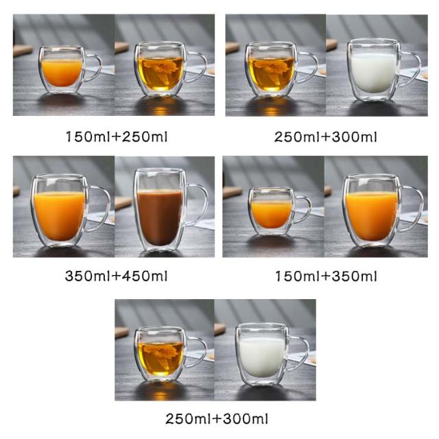 | 【ダブルウォールグラス】【2個セット】 【150ml 250ml 300ml 350ml 450ml】 飲み頃温度をキープできるおしゃれなダブルウォールグラス。 ダブルウォール(二重構造)のグラスが冷たさ・暖かさを長くキープします。 キンキンに冷えたドリンクが入っていても表面に結露が出にくく、手が濡れにくい。 テーブルを濡らすこともありません。 さらに、ホットドリンクが入っていても表面が熱くなりすぎず、中身が熱々のままでもグラスを持てるのが特徴です。 耐熱グラスで冷温両用なのでいろんな飲み物に使えます。 ドリンクだけでなくヨーグルトやスープ、スイーツ、フルーツ、デザートカップにも◎ オールシーズンあらゆるシーンで活躍。 | |