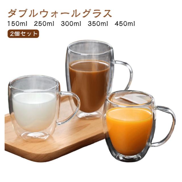 ダブルウォールグラス 2個セット 250ml 450ml 食器 150ml ダブルウォールグラス 350ml おしゃれ シンプル 耐熱 耐冷 保温 保冷 2重グラス キッチン用品 コップ コーヒーカップ タンブラー カプチーノ カフェラテ