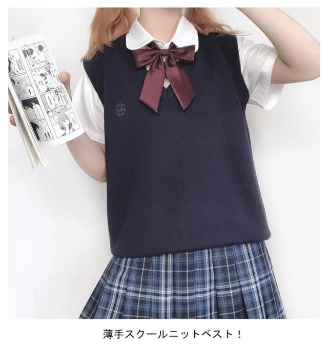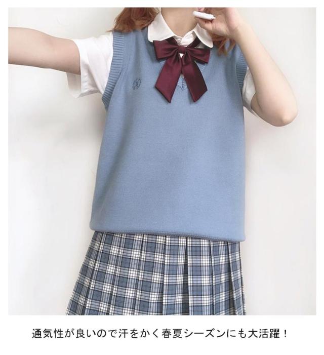 ノースリーブ Vネック 制服 夏用 制服 ニット レディース スクールセーター 無地 Vネック ゆったり 女子高生 シンプル 制服 学生服 通学 中学生 JK ベスト コスプレ かわいい