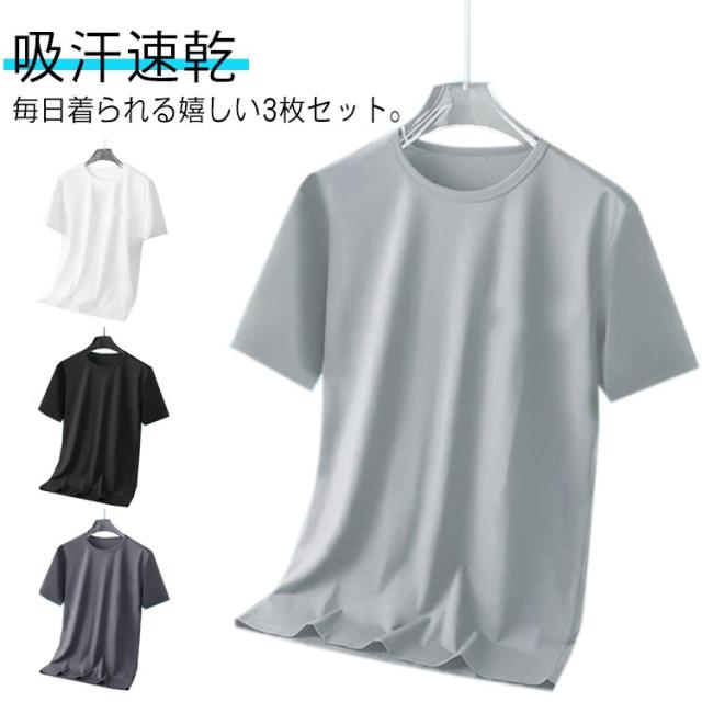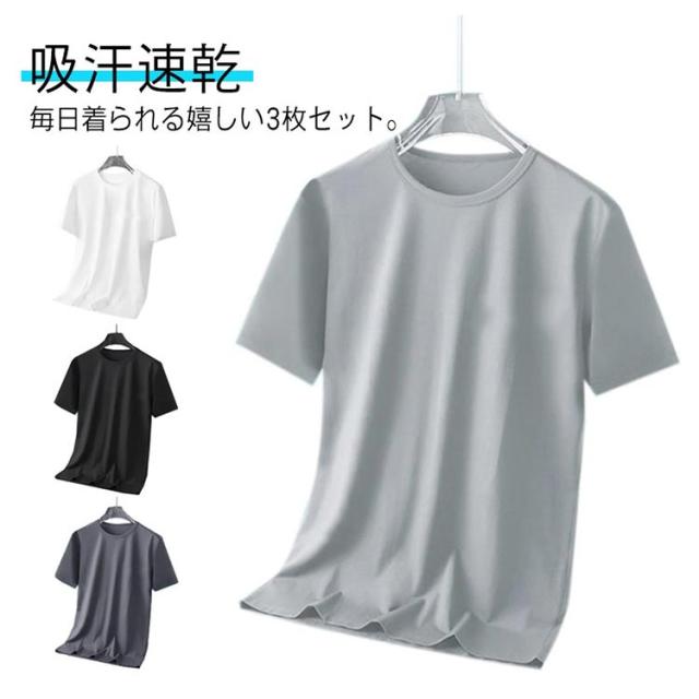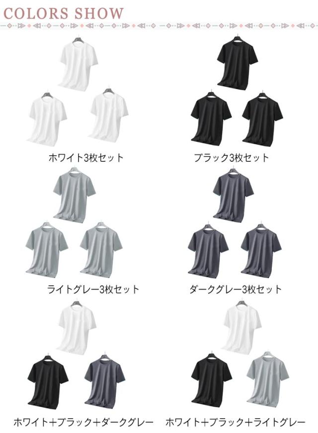 白 グレー 接触冷感 大人 3枚セット!tシャツ おしゃれ メンズ 夏 半袖tシャツ 50代 ゆったり 涼しい 無地 アイスシルク 吸汗速乾 カジュアル ひんやり スポーツ さらさら ランニングウェア トレニンーグ 大きいサイズ クルーネック 20代 30代 40代 黒