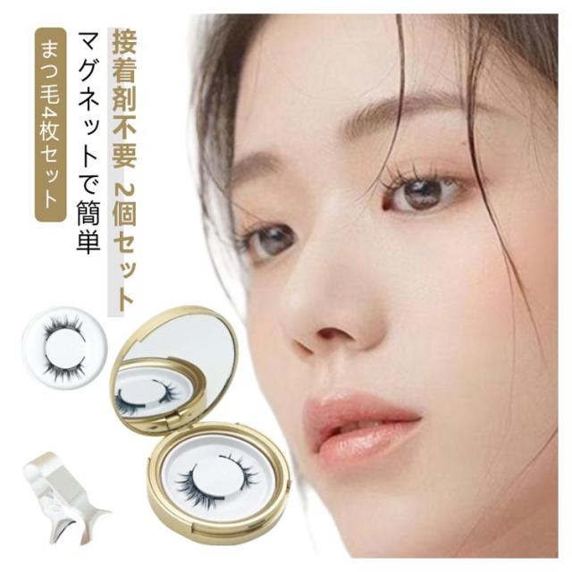 磁気 2個セット つけま 2個セット マグネット式 再利用 磁気まつ毛 3Dつけまつげ 付け睫毛 マグネット 送料無料 送料無料 つけまつ毛 接着剤なし ビューラー付き 長持ち 2タイプ入り