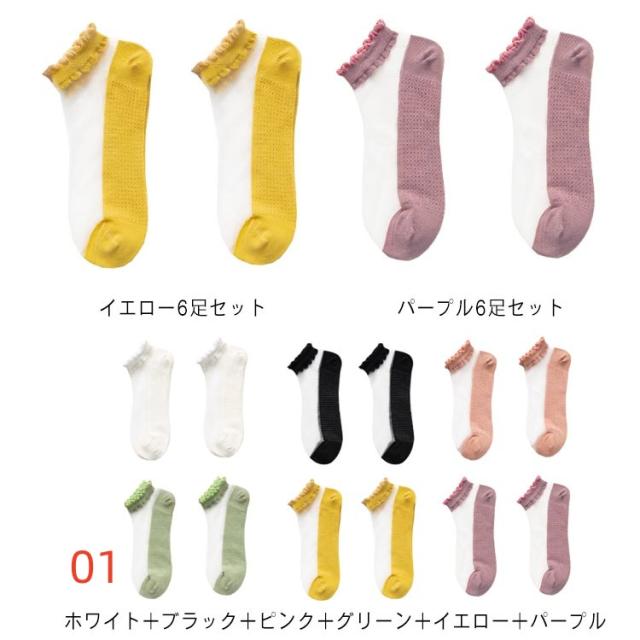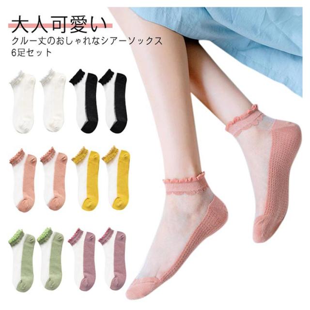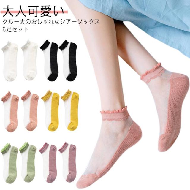 くつした シースルーソックス レディース カバーソックス フリル フットカバー ショートソックス 伸縮性 アンクル丈 オシャレ 薄手 涼しい 大人可愛い おしゃれ 靴下 6足セット インナーソックス 速乾 抗菌 通気性 無地 くつ下