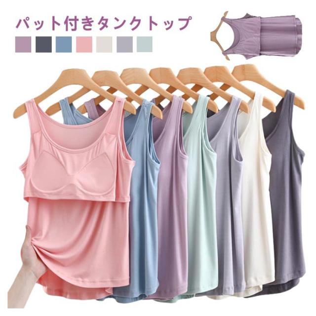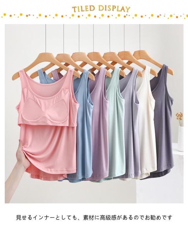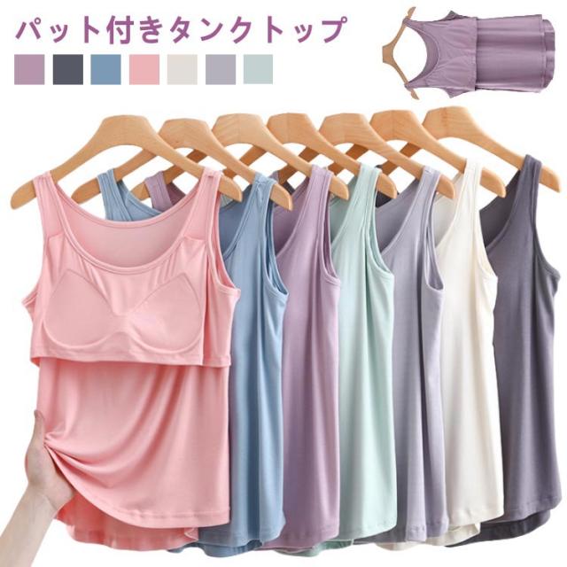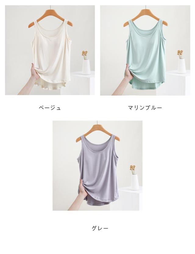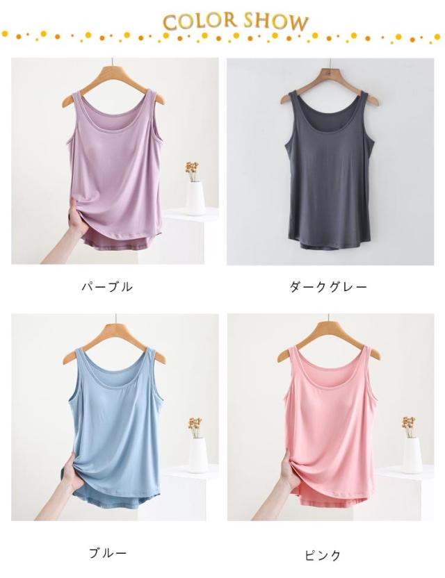 カップ付き タンクトップ 締め付けない ゴムなし ルームウェア パット付 アンダーフリー パッドのみ ズレない ブラトップ 前のみ 固定 カップ付き インナーレディース ラウンドネック 送料無料 インナー 袖なし 袖無し 肌着 婦人 下着 バラ