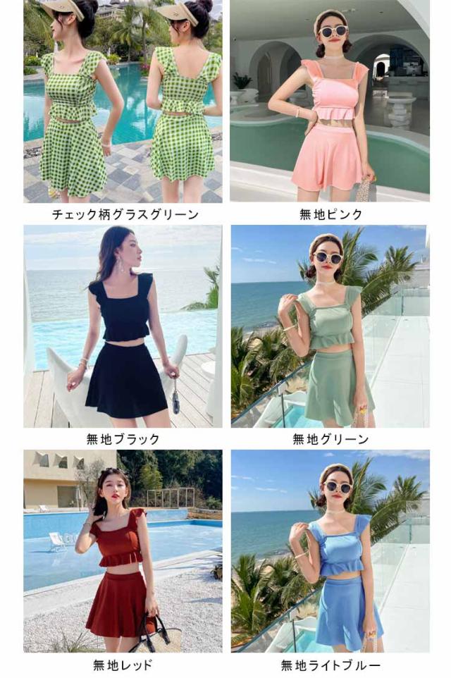 水着 フリル セパレート 韓国 水着 小胸 水着 安全パンツ タンキニ ビキニ チェック柄 可愛い スイムウェア 上下セット スカート レディース水着 水着 みずぎ 体型カバー 学生 少女 水着 大人 水着 女性 リゾート 水泳
