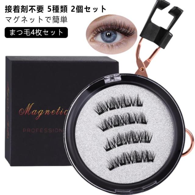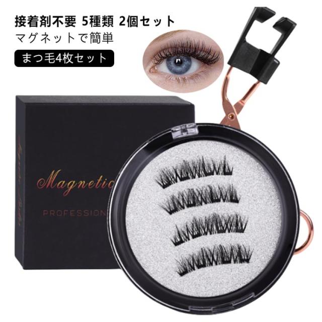 マグネット式 接着剤なし 2個セット 2個セット つけまつげ 再利用 つけまつ毛 つけま 付け睫毛 マグネット 磁気 送料無料 送料無料 3Dつけまつげ ビューラー付き 長持ち 5タイプ入り