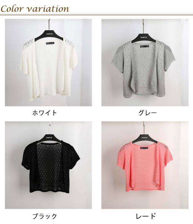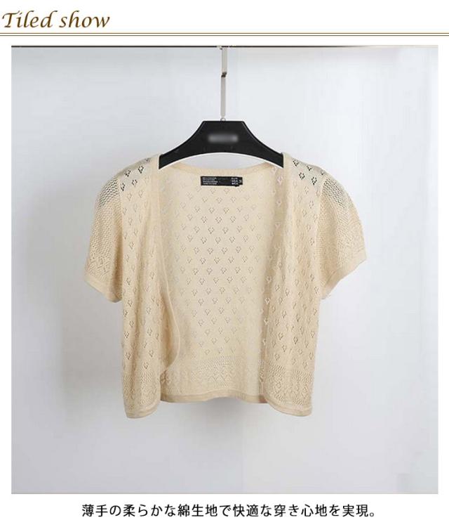 サマーカーディガン レディース 透かし編み ボレロ 羽織り 春夏 薄手 カーディガン ショート丈 半袖カーディガン ニットカーディガン 透け ニット ライトアウター サマーニット 冷気対策 春 夏 秋 全8色 送料無料