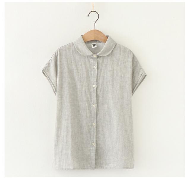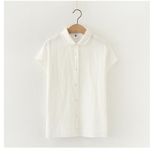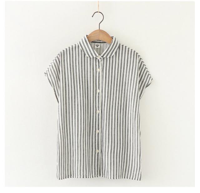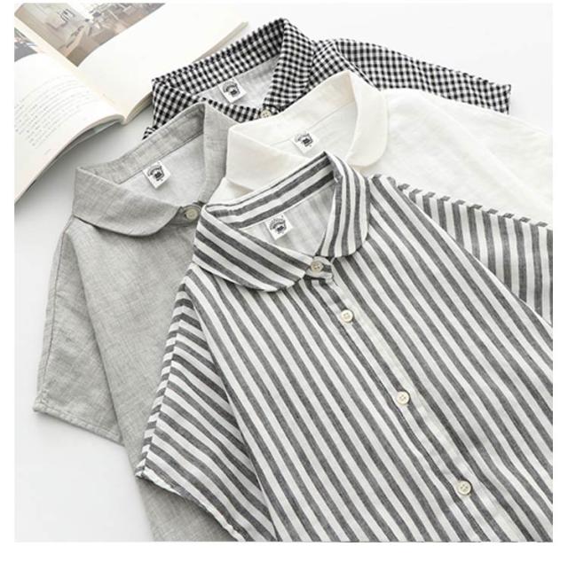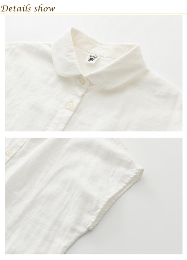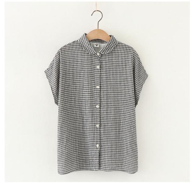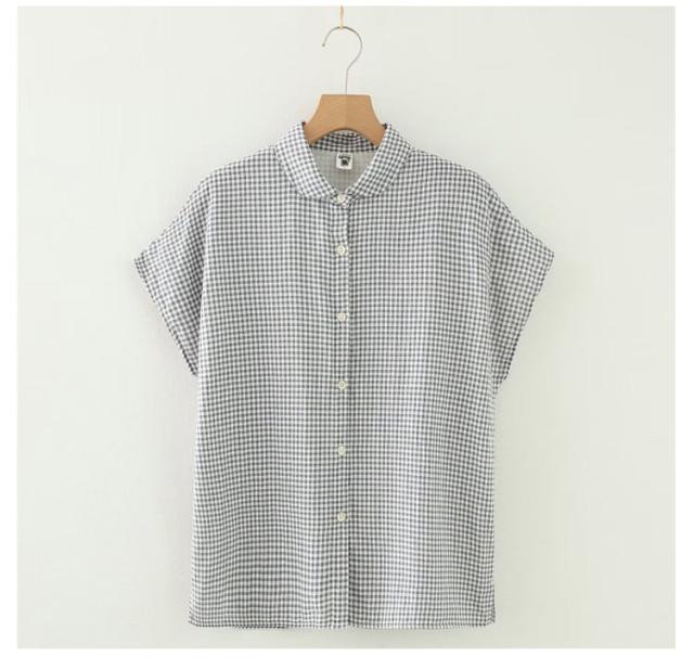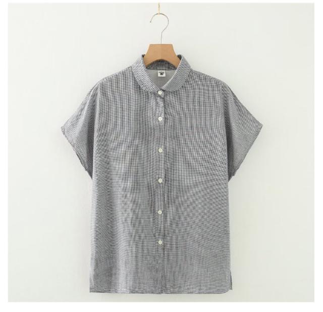 レディース 丸襟 半袖 シャツ ダブルガーゼ カジュアル シャツブラウス ストライプ シャツ ブラウス トップス フレンチスリーブ 折り襟 シャツ 無地 チェック 半袖 ゆったり 大きいサイズ 体型カバー 通勤 夏 シンプル