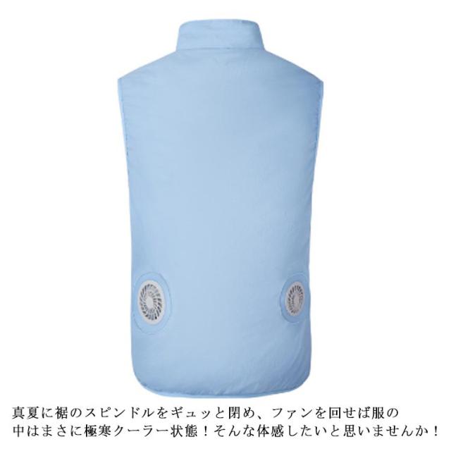 | 簡単に稼働するファン付きベスト。※バッテリーは付属しておりません。 男女兼用!夏作業に涼しく快適に仕事できる電動ファン内蔵の作業ベスト。旅行やキャンプなどイベント、工事、建築の現場作業、農作業、ガーデニング等の 野外作業、工場、倉庫、配達、調理等の作業、アウトドア、自転車の運転時等様々なシーンで活躍します。 服の中に外気を取り入れ、体の表面に大量の風を流すことにより、汗を気化させて、涼しく快適にすごしていただくための製品です。 使用するエネルギーもエアコンなどに比べて格段に少なく、環境にも配慮した製品です。 工場や屋外作業などエアコンの使用できないような環境でも、快適にすごしていただけるようになります。真夏に裾のスピンドルをギュッと閉め、ファンを回せば服の中はまさに極寒クーラー状態!そんな体感したいと思いませんか! 【洗濯可】汚れてもファンを取り外せば洗濯機で丸洗い可能! 服は洗濯機でお洗濯が可能です。洗濯前に、電池、扇風機、電源ケーブルを取り外してください。 【熱中症対策】布地高密度コットンブロード、高密度で織り上げることで、空気の漏れを少なくした素材。 【ファンの装着方法】 1.ファンのパーツがネジ式になっております。留めるためのパーツを回して外してください。 2.ファンをベストの外側から装着し、生地をはさむ形でしっかりと回して留めてください。 | |
