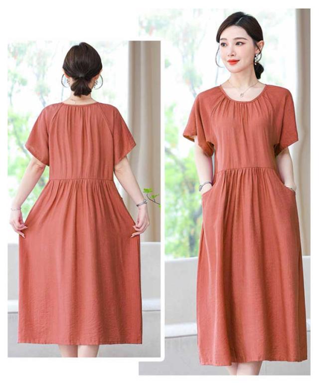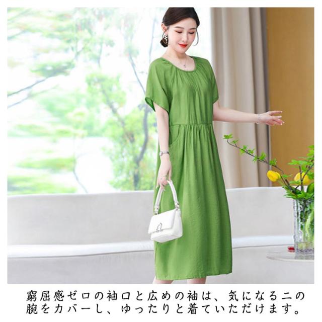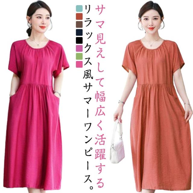 | サマ見えして幅広く活躍するリラックス風サマーワンピース。 サラッとした肌触りで着心地の良い素材を使用。程よくハリ感があり、きれいなシルエットをキープしてくれます。 スッキリとしたランドネックデザインで、首元がつまっていないので重ねきもしやすいです。 窮屈感ゼロの袖口と広めの袖は、気になる二の腕をカバーし、ゆったりと着ていただけます。 ふんわり広がる女性らしいAラインシルエットがポイント。半袖とAラインで気になる部分は体型カバーしてくれる優秀な一枚。 シンプルですが一枚でサマになるワンピースは、リゾートシーンやデイリーなど幅広く活躍します。 | |