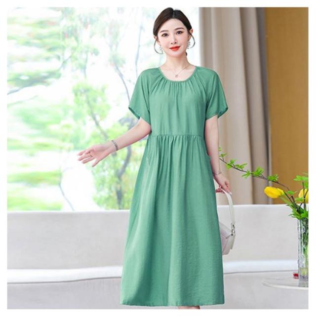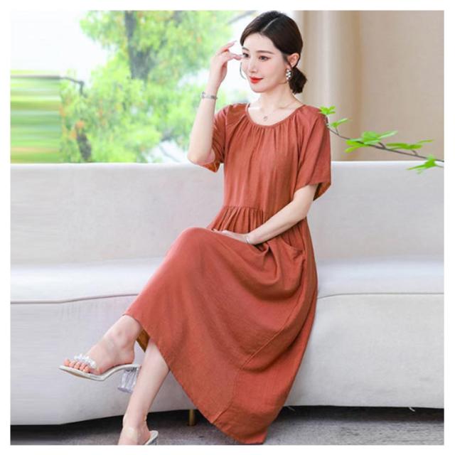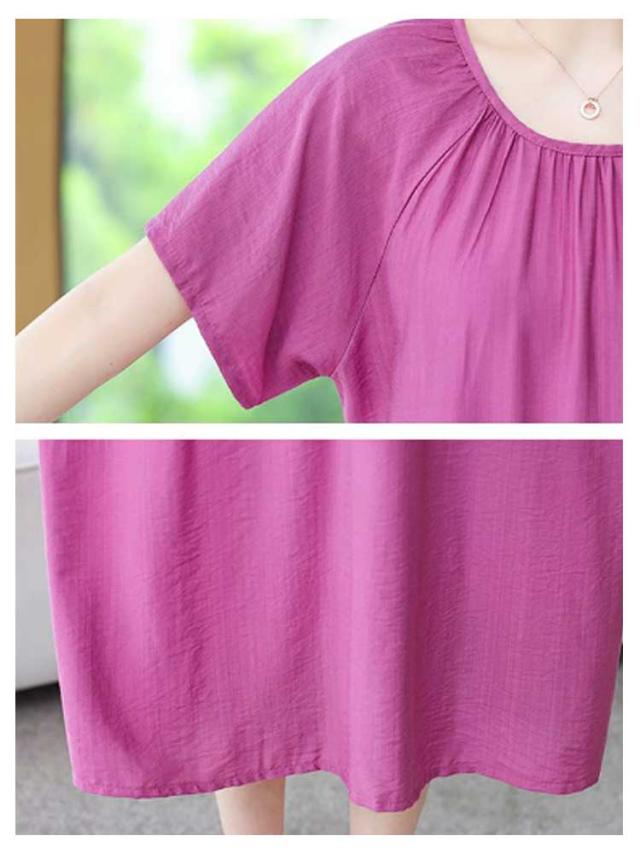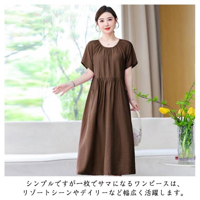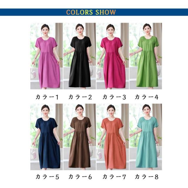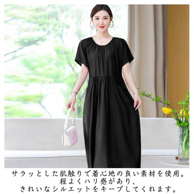シャツワンピース ゆったりワンピース カジュアル ルームワンピース 半袖 薄手 ロングワンピース ロング丈 ワンピース ゆるシルエット ミモレ丈 クルーネック 体型カバー 無地 半袖 通気性 部屋着 お出かけ おうちコーデ シャツワンピース 吸湿性 快適