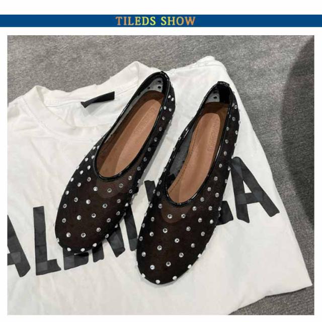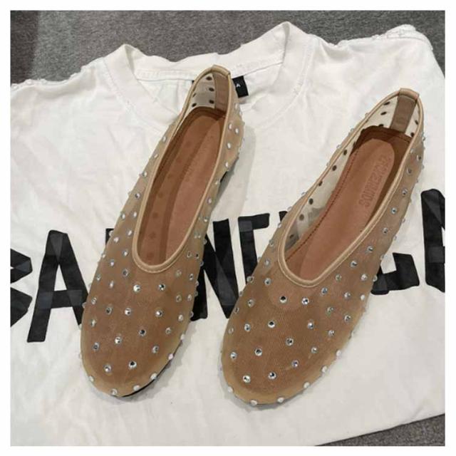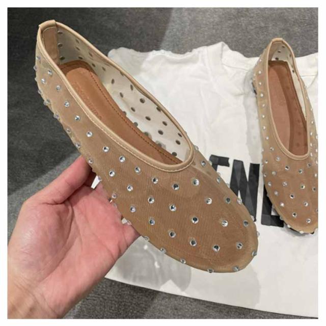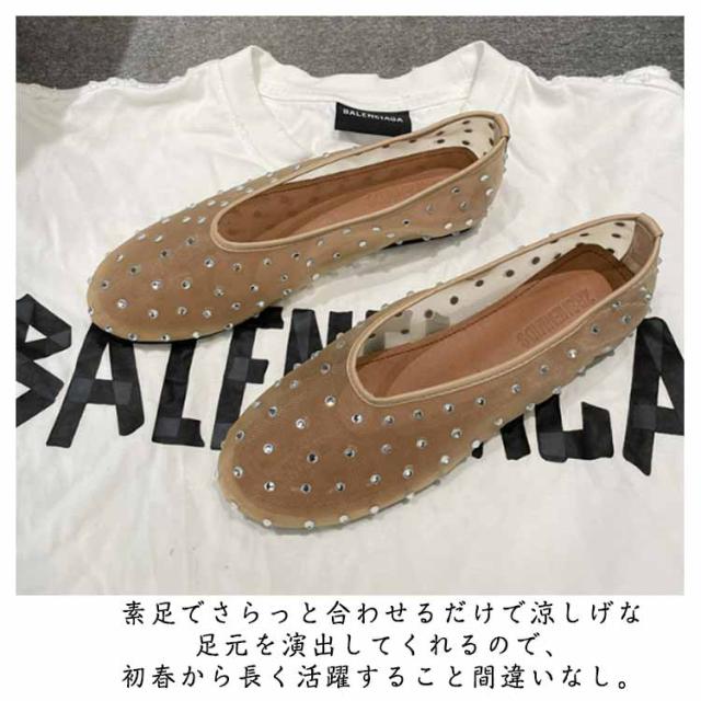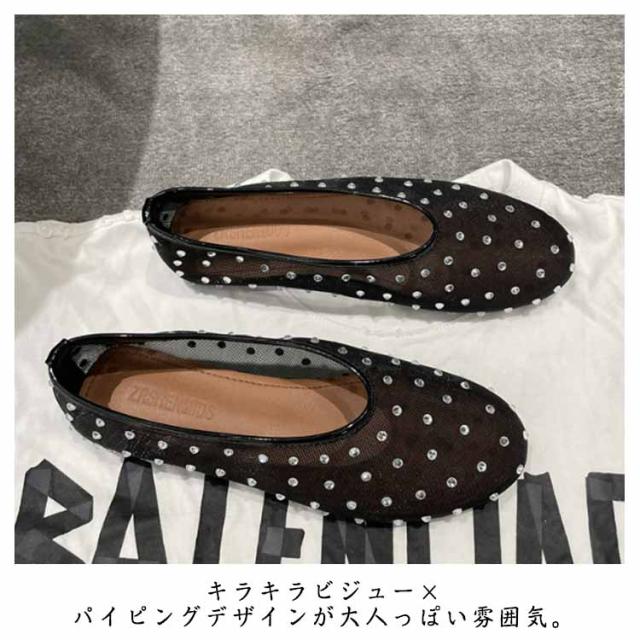 ビジュー パンプス キラキラ シースルー メッシュサンダル 通気性 ビジュー ぺたんこ おしゃれ 透け感 蒸れない透け感 おしゃれ フラットパンプス 蒸れない 歩きやすい 柔らか 疲れない メッシュフラットパンプス ブラック