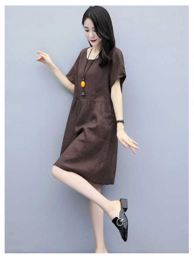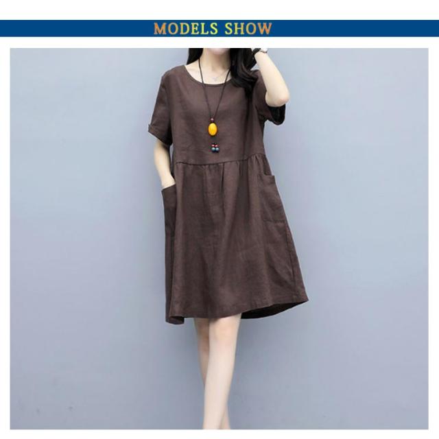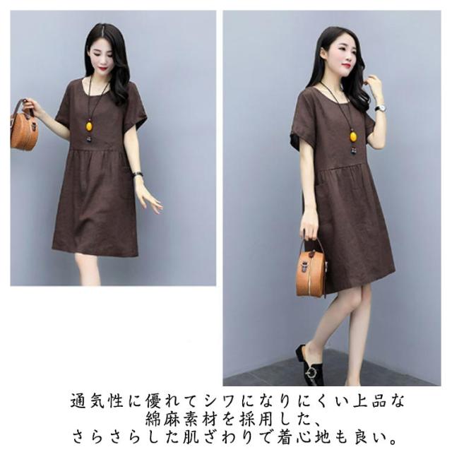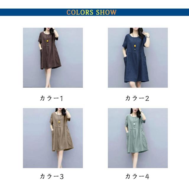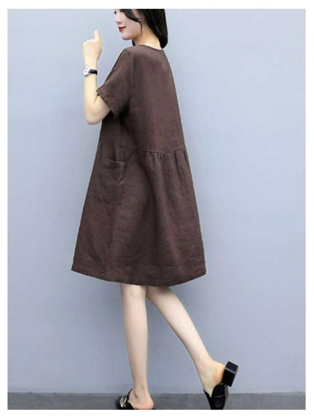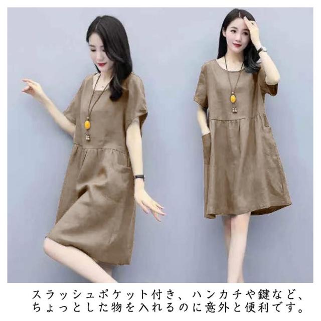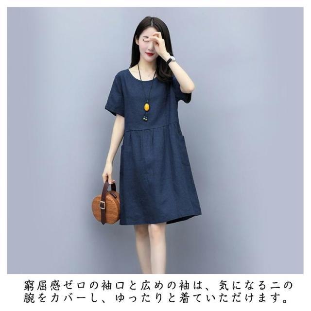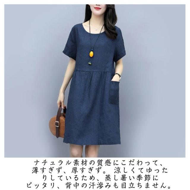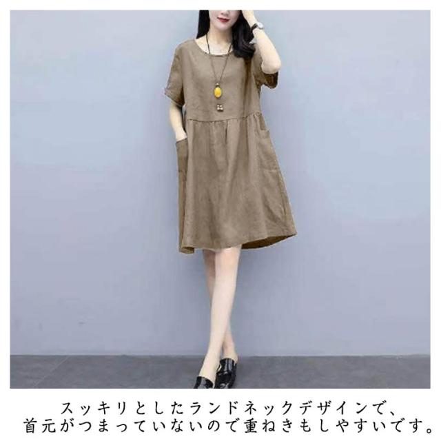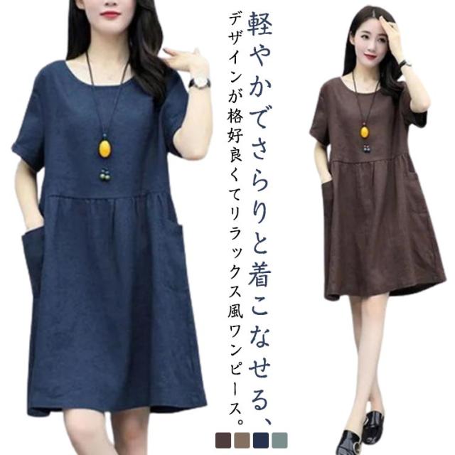 ミモレ丈 aライン チュニック リラックス 綿麻 レトロ 半袖ワンピース シャツワンピース ゆったり aラインワンピ リゾート リネン ナチュラル レディース ポケット付き おしゃれ 部屋着 癒され系 森ガール 着痩せ 半袖ワンピース シンプル 体型カバー リラックス