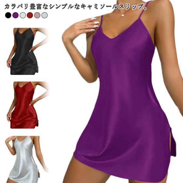 キャミソールワンピース スリップ 下着 ワンピース 透けない サテンスリップ ランジェリー インナー 無地 レディース スリップ 透け防止 下着 インナーワンピース ストレッチ 肌着 部屋着 ルームウエア 薄手 きれいめ カジュアル ロングキャミ
