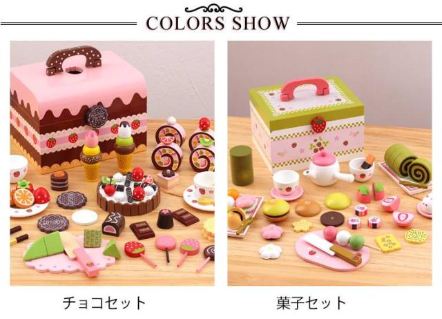 | ・かわいいスイーツ満載で、カフェごっこが盛り上がる! ・木のあたたかみがうれしい、ケーキや和菓子のセットです。 ・大人の真似をする「ごっこ遊び」はお子様の好奇心を刺激し、観察力や創造力を養います。 ・専用の大きい木箱付きで、お片付けの練習もできます。 | |