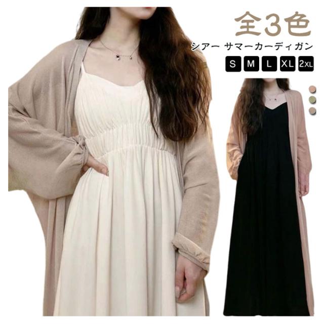 カーディガン 紫外線カット サマー カーデ 夏 シフォン 長め丈 ロング丈 ロングカーディガン サマー 長袖 紫外線対策 レディース 羽織り 涼しい おしゃれ UVカット シアー サマーカーディガン 透け感