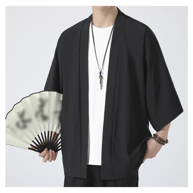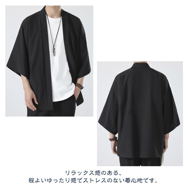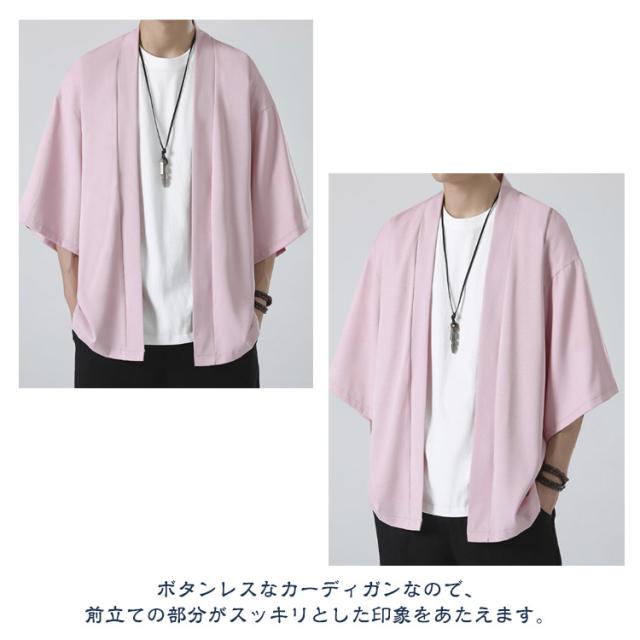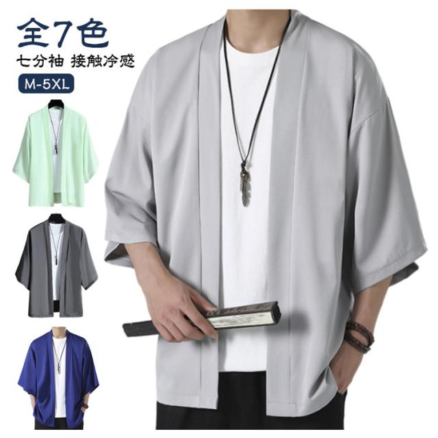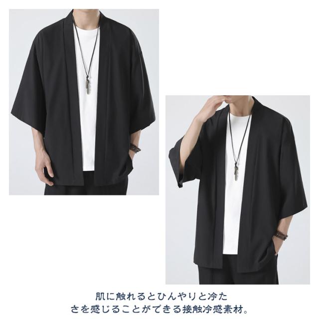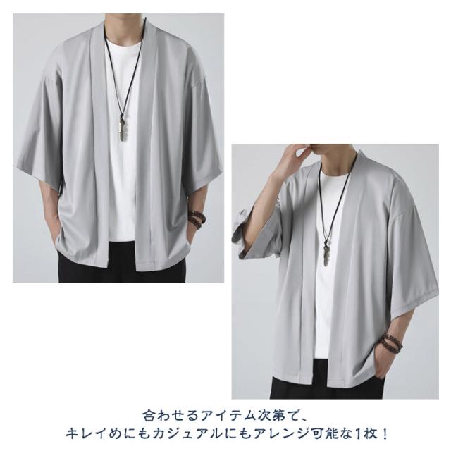 和風 ドロップショルダー カーディガン アウター サマー ビジネス コート カジュアル メンズ 無地 サマーカーディガン ルーズ ビッグ おしゃれ 接触冷感 ルームウェア トップス 大きいサイズ 和式カーディガン 七分袖 羽織