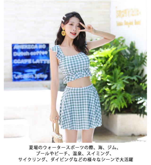 水着 水着 韓国 可愛い ビキニ 学生 フリル 大人 タンキニ 水着 レディース水着 上下セット スカート 安全パンツ リゾート 水着 みずぎ セパレート 小胸 学生 スイムウェア チェック柄 露出控えめ 水着 女性 少女 水泳 みずぎ ビーチ 海 温泉 プール 10代 20代 体型カバー