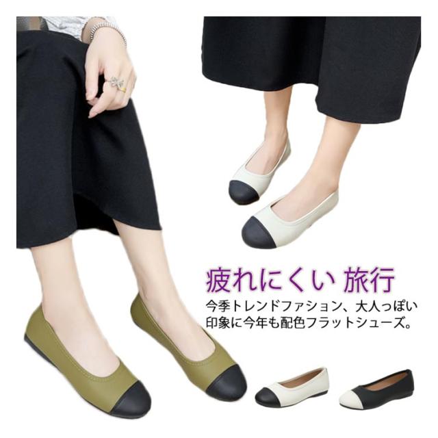 おしゃれ レディース パンプス フラットシューズ 夏 歩きやすい フラットパンプス ぺたんこ 履きやすい 配色 痛くない 旅行 走れる 疲れにくい ママ 通勤