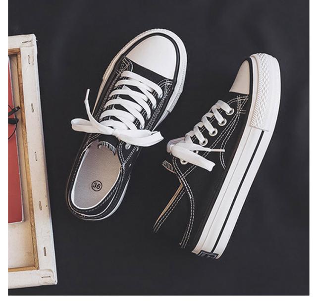 | 見た目はシンプルで定番デザインのキャンバススニーカー。 かかとが踏める2way仕様で、さっと脱ぎ履きでき、ちょっと履きにおすすめです。 カジュアルからキレイ目まで、いろんなスタイルに相性バッチリ♪ 普段履き、学校・通学、通勤など幅広いシーンで活躍! | |
