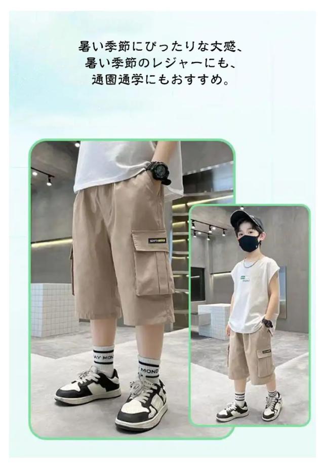 | 120-170cm!夏に快適なカーゴハーフパンツです。 肌触りがよく着心地は優れています。 ウエスト部分はゴムの為、着替えもラくラく。 ゆったりで動きやすくて、普段着用としておすすめ。 おしゃれなデザインで子供の元気さをはっきり演出できます。 暑い季節にぴったりな丈感、暑い季節のレジャーにも、通園通学にもおすすめ。 | |