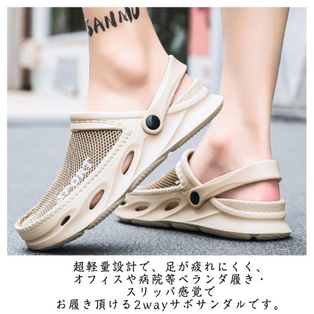 外反母趾 サンダル 2way スニーカーサンダル 超軽量 サボサンダル 2タイプ選べる サンダル メッシュ メンズ つっかけ バックストラップ スリッパ 通気性 軽い 幅広 スリッパ 24.5-27cm サンダル スポーツサンダル スリッポン シューズ オフィス 涼しい