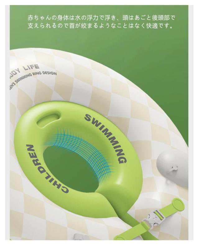 | 手で押すだけで、簡単に膨らせる赤ちゃん用の浮き輪。 押すだけで空気入れをいれることができる新開発浮き輪。毎回空気入れを探す手間を省き、かさばらずどこでも携帯することができます。 このベビーフロートはお風呂でプールで使用することで、水中に浮いた状態で手足を自由に動かす感覚に慣れることができます。 赤ちゃんの身体は水の浮力で浮き、頭はあごと後頭部で支えられるので首が絞まるようなことはなく快適です。 赤ちゃんが舐めても安全な素材を使用し、上下2本ベルトで赤ちゃんをしっかり固定し、安定感抜群! このベビー用首浮き輪は赤ちゃんが水慣れに、運動能力やバランス感覚の発達促進に、夜泣き対策に役たちます。 | |