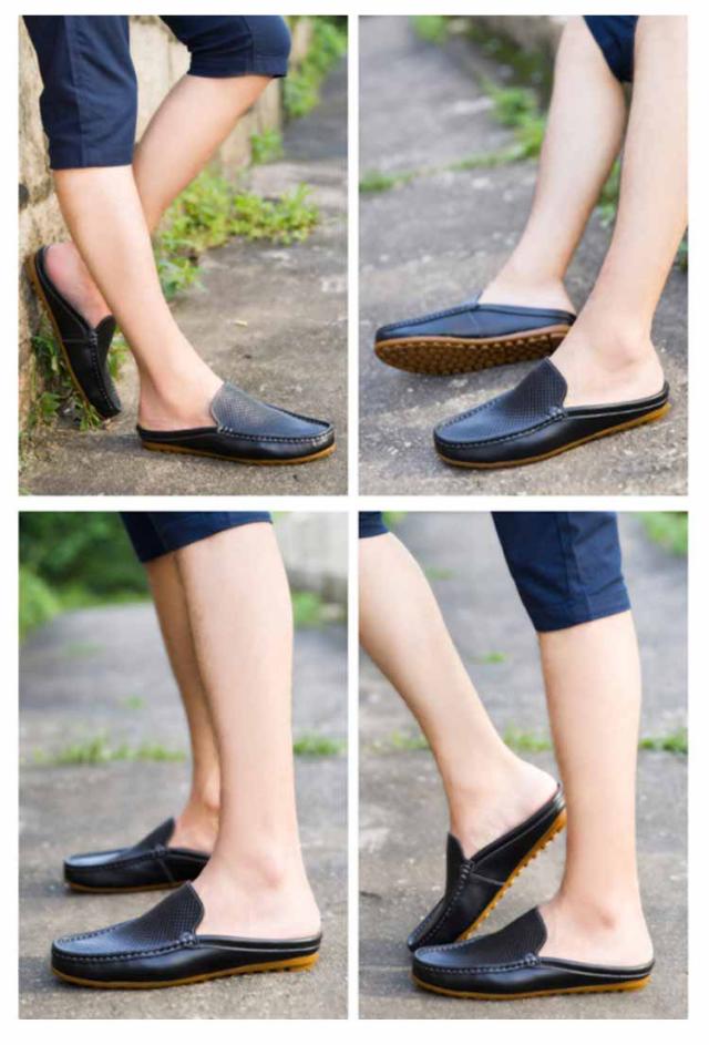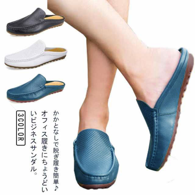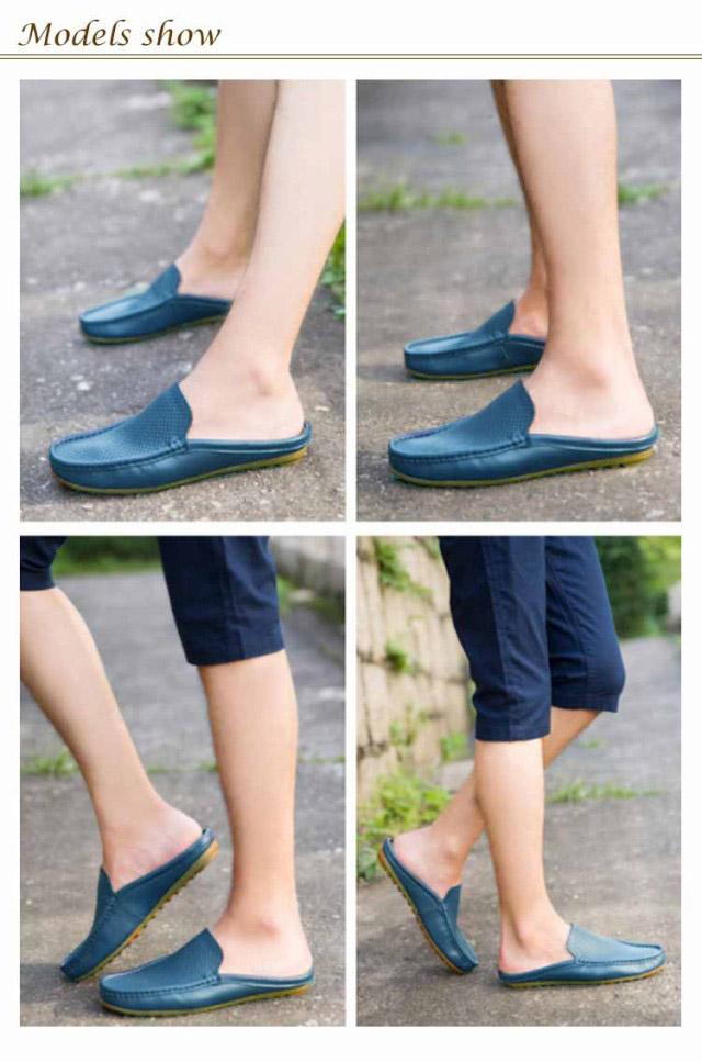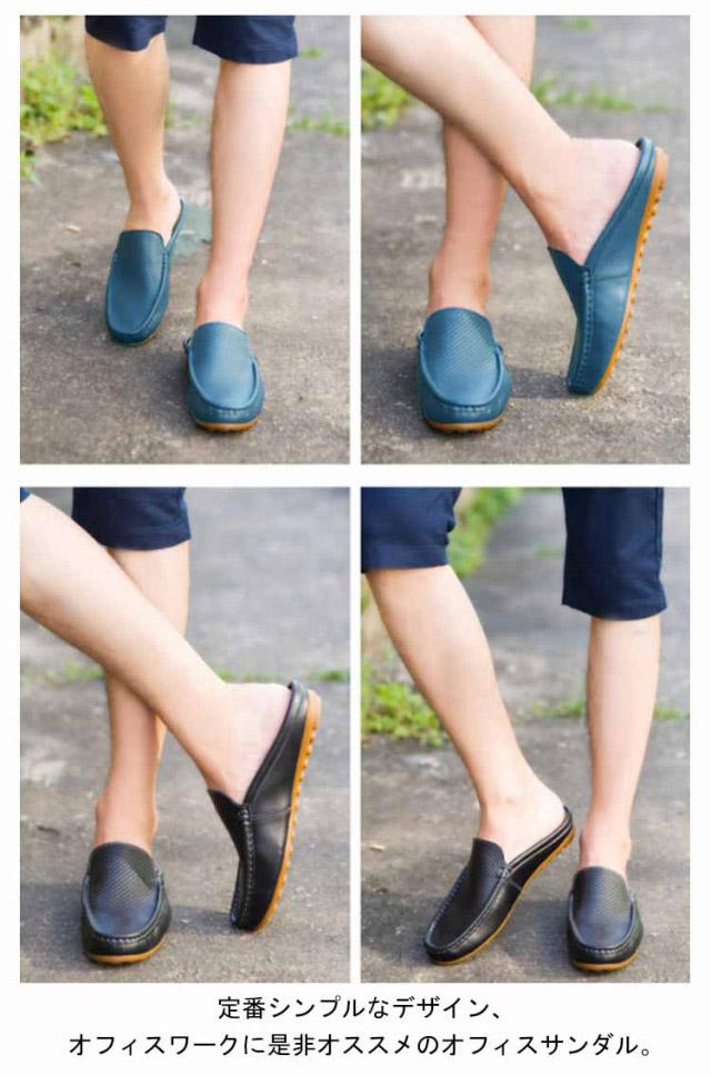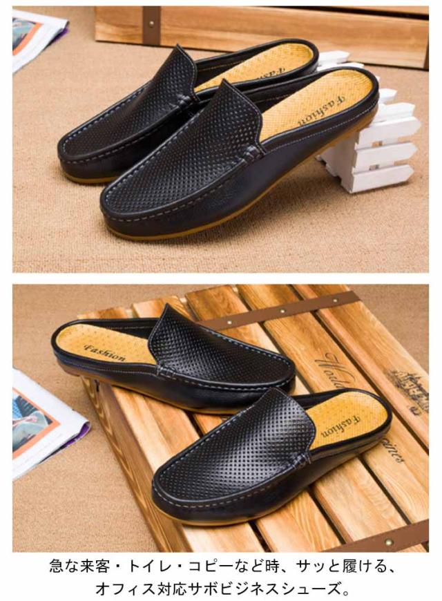かかとなし メンズ 通気性 シューズ 社内履き デスクワーク ビジネスシューズ スリッポン オフィスサンダル 革靴 紳士靴 蒸れない ビジネス オフィス サボサンダル