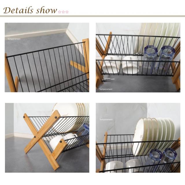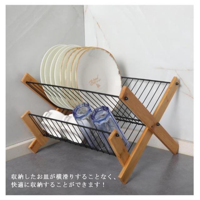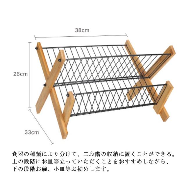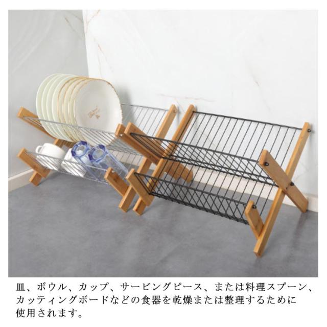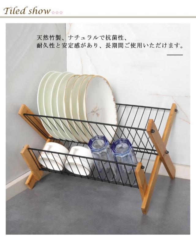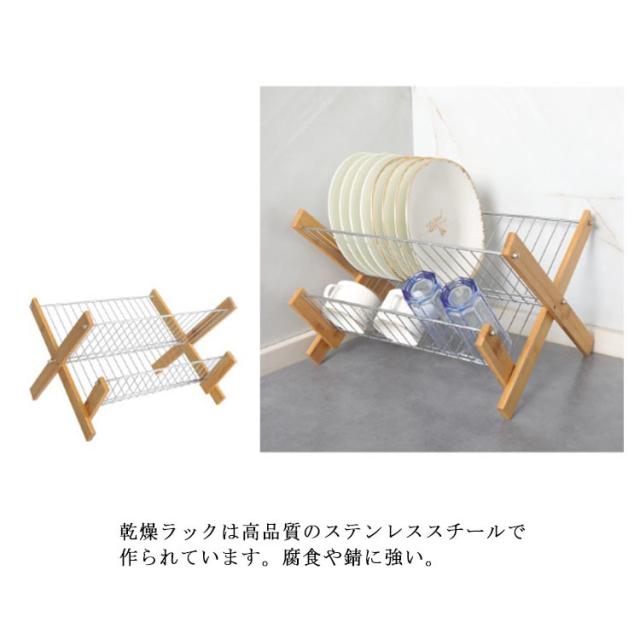 2段 竹製 おしゃれ ステンレススチール 折りたたみ 水切りかご 水切り 折りたたみ式 カゴ キッチン収納 食器棚 スタンド キッチン 水切りトレー キッチン用品 台所 お皿立て 食器ホルダー 収納 プレート 包丁立て ナチュラル 北欧 水切りラック