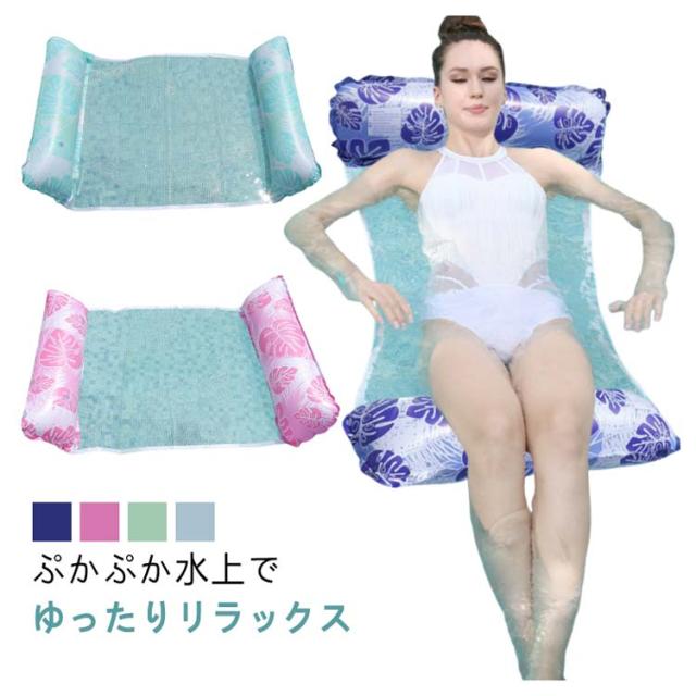 フロート マット ウォーターハンモック 浮き輪 背もたれ付浮き輪 浮き輪ベッド 浮き具 底面メッシュ 浮き輪 プールパーティー ソファー 海水浴 フローティング ビーチ 海 ウォーターチェア リーフ柄 送料無料 強い浮力