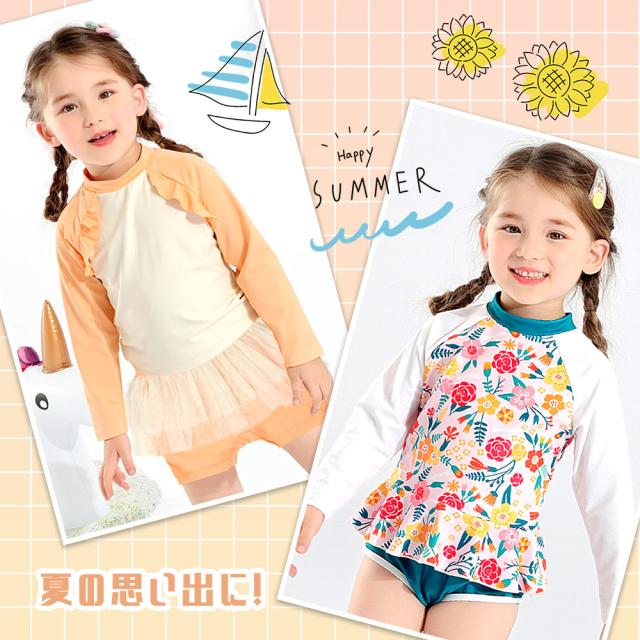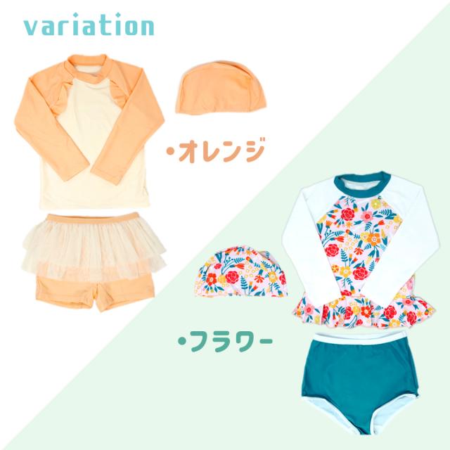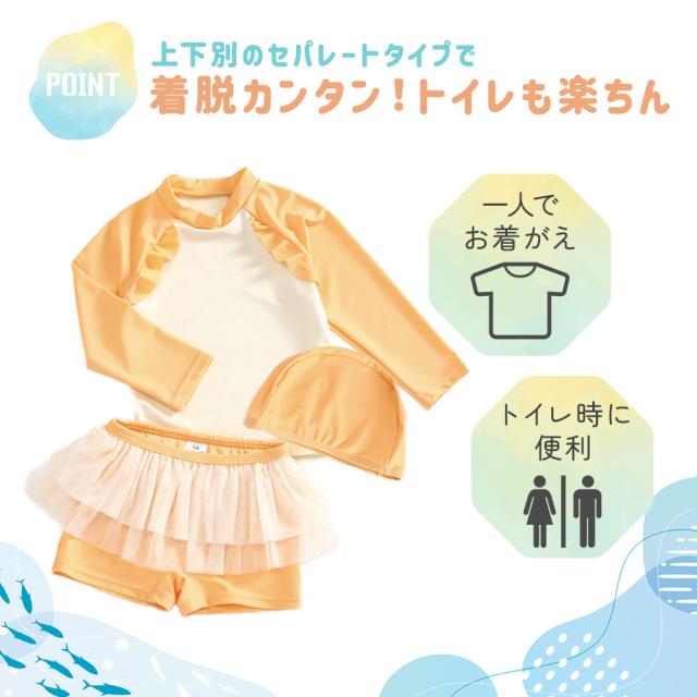 ラッシュガード 3点セット 帽子付き キッズ ガールズ 女の子 セパレート 100 110 120 ラッシュガード付き 水着 上下セット 日焼け対策 長袖 トップス スカート スイムウェア フリル かわいい 水陸両用 おしゃれ 水遊び 小学生 幼稚園 保育園 3歳 4歳 5歳 6歳 MILASIC TN-SRHG