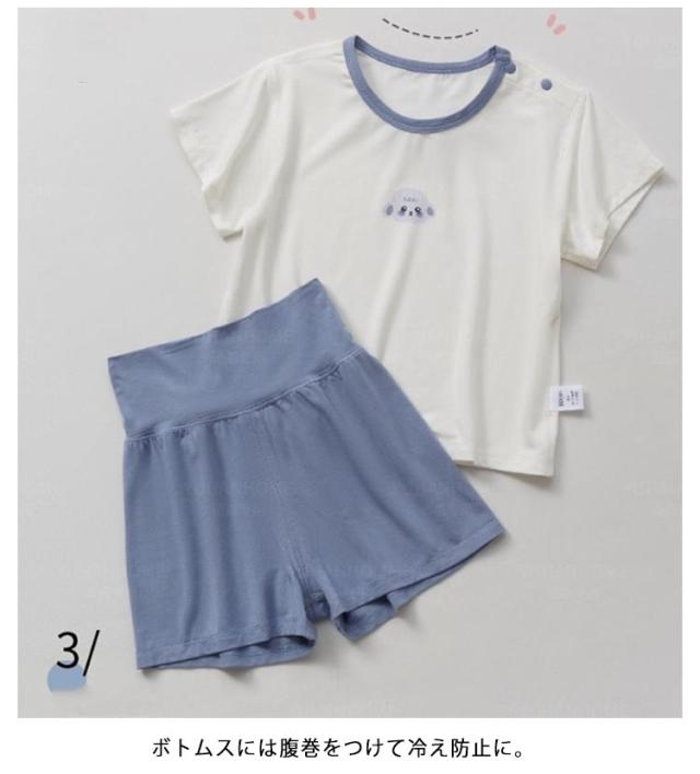 ベビー パジャマ 上下セット 半袖 tシャツ 腹巻付き ショートパンツ 赤ちゃん キッズ 子供 ルームウェア セットアップ アニマル柄 動物柄 かわいい 女の子 男の子 寝間着 ナイトウェア 薄手 吸汗速乾 通気性 伸縮性 ストレッチ 春 夏 70 80 90 100 110 120 【送無】
