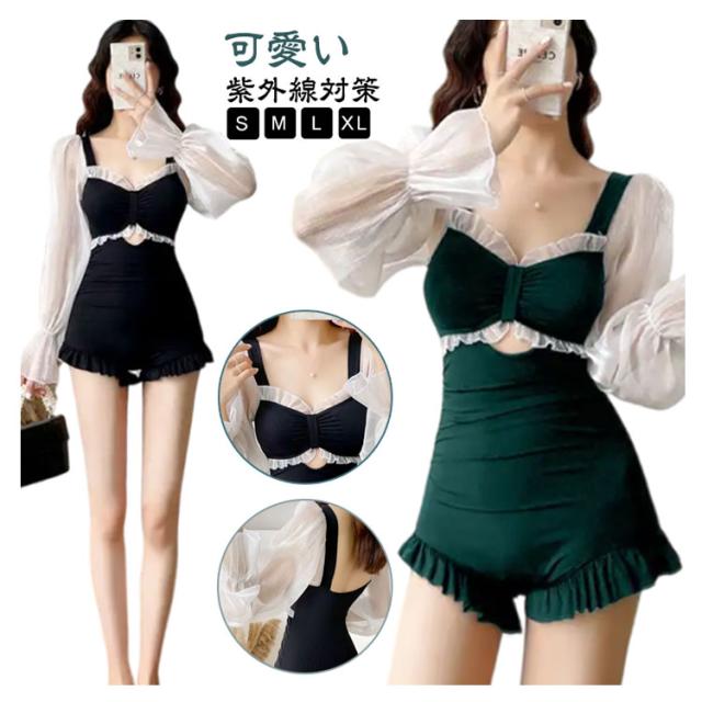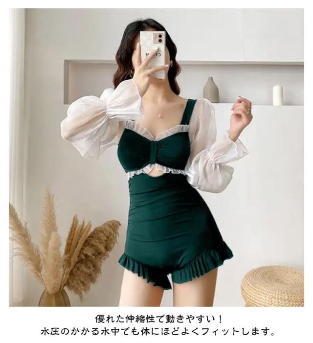 長袖 水着 レディース 水着 おしゃれ 背中見せ UVカット きれいめ UVカット 紫外線対策 女の子 レース 可愛い ミセス ママ スイムウェア ワンピース 韓国風 学生 体型カバー 高校生 大学生 夏 海 プール 温泉 旅行 L みずぎ ミズギ S M L XL セクシー 送料無料