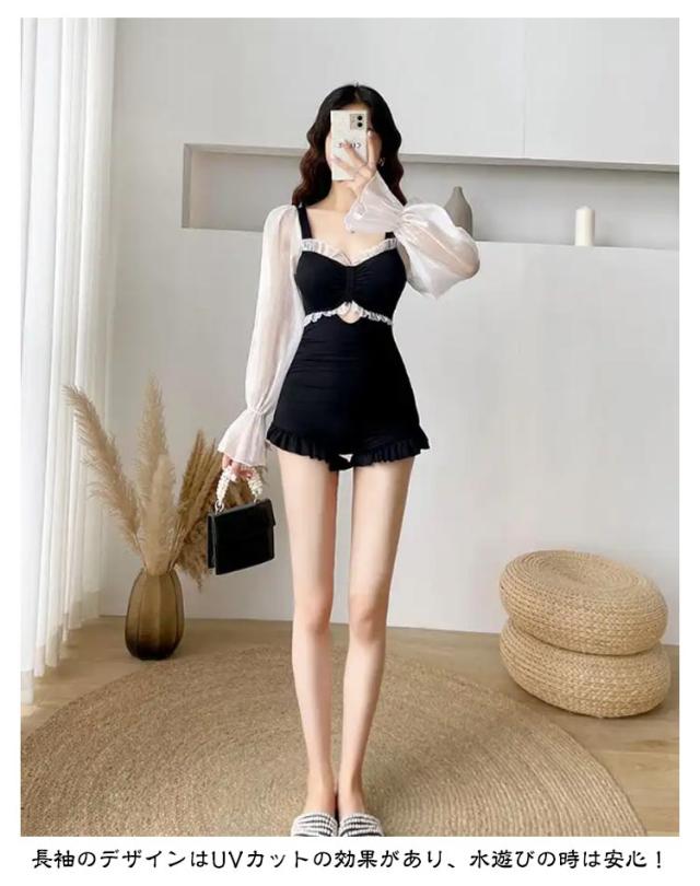 | キレイめスタイルで大人可愛い水着 お腹と腕をしっかりカバー、気になる部分露出抑えめが嬉しい。 胸と裾の部分はフリル設計、女性の甘さを溢れています。 長袖のデザインはUVカットの効果があり、水遊びの時は安心! 優れた伸縮性で動きやすい!水圧のかかる水中でも体にほどよくフィットします。 | |