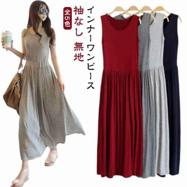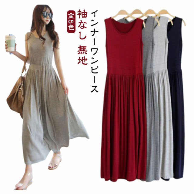 インナーワンピース ロング丈 タンクトップ ワンピース ワンピ下 カジュアル ペチコート ぺチワンピ レディース モーダル 綿 春 夏 ロングワンピース マキシ丈 ノースリーブ 体型カバー ルームウェア 部屋着 透けない 透け防止
