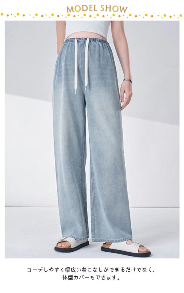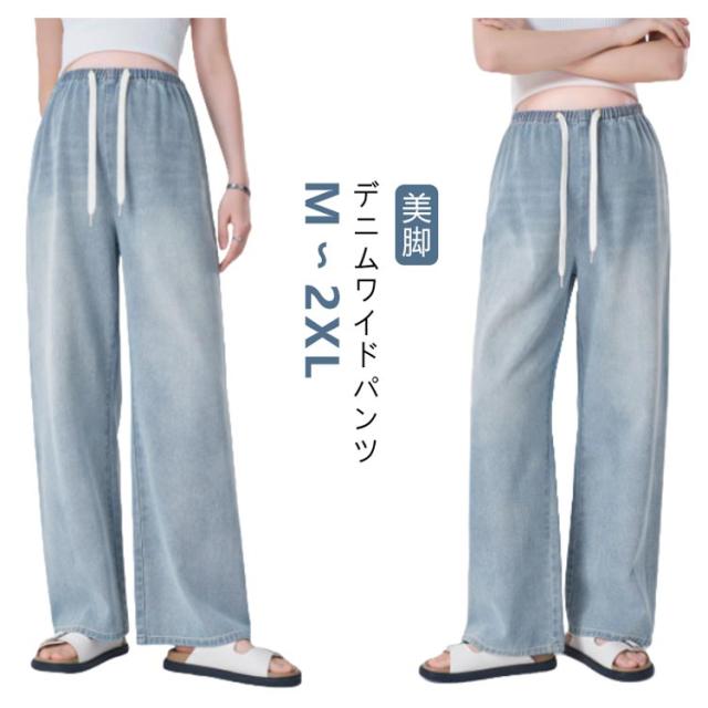 | デニムワイドパンツ M〜2XL コーデしやすく幅広い着こなしができるだけでなく、体型カバーもできます。 締め付けずゆったりと履けます。 お腹周りが締め付けない幅広ゴム大切なお腹をすっぽりと優しく包みます。 体型が変わりやすい、妊娠期にも安心な調整可能ウェスト紐付き。 | |