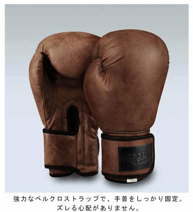 | 豪華なヴィンテージスタイルのボクシンググローブ。 強力なベルクロストラップで、手首をしっかり固定。ズレる心配がありません。 メッシュ素材で通気性をよくし、グローブをドライに保ちます。 合成皮革を使用しているので、衝撃を吸収しやすく、耐久性が高いです。 | |
